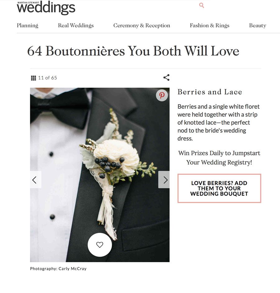 Wow, wow, wow…what a way to start the day! You can find a few of my handsome grooms’ boutonnieres featured on Martha Stewart Weddings today! Love seeing the guys get a little bit of love from Martha! xoxo